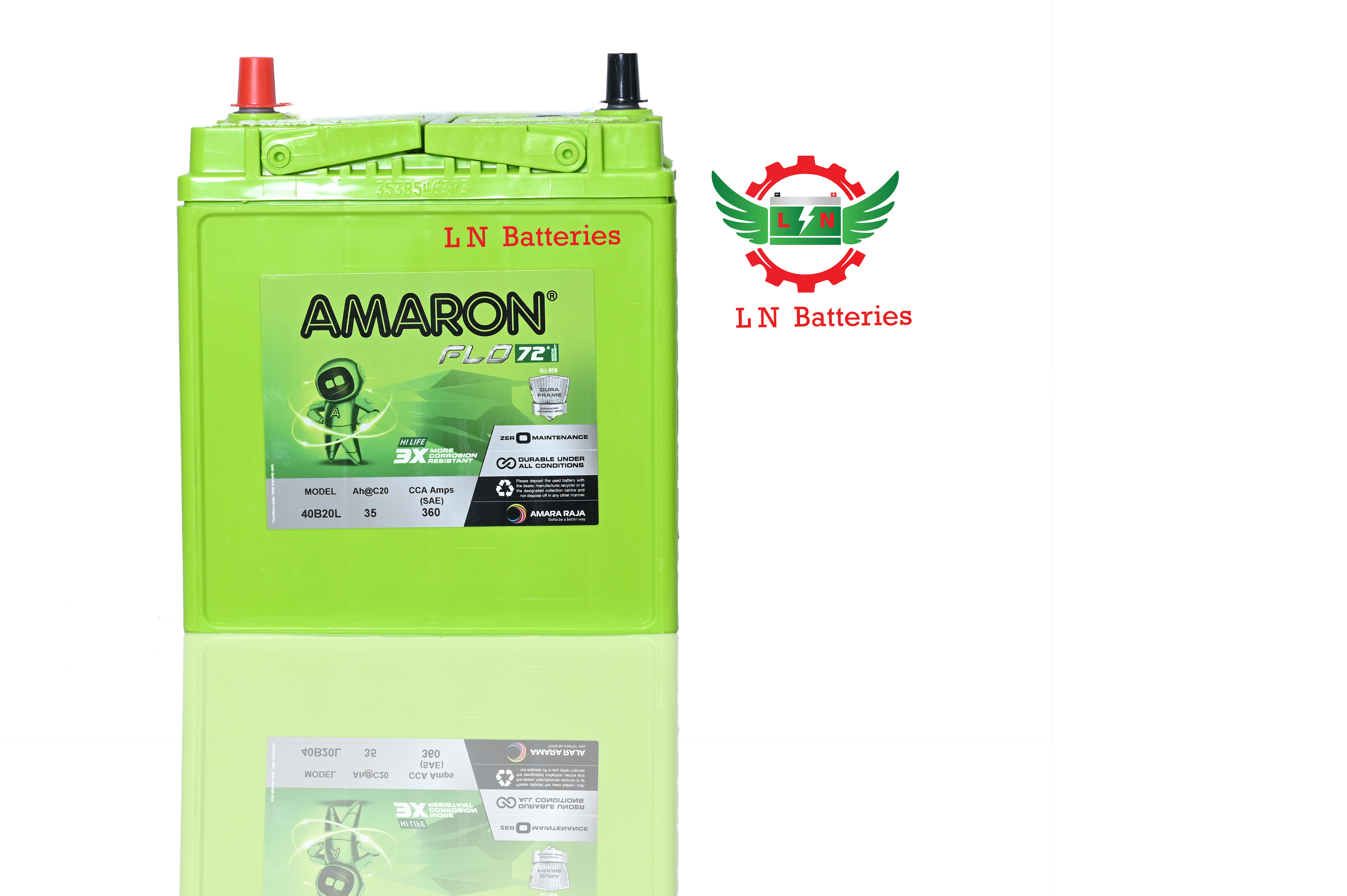 Amaron FLO 40B20L (35 Ah) – Highest warranty at 72 months; priced ₹3.4–3.9 k.