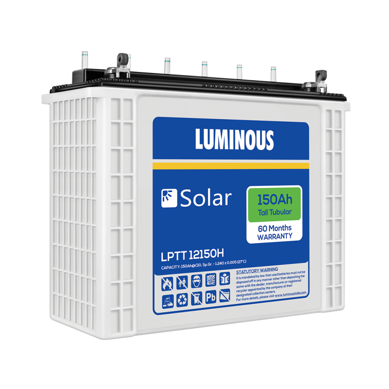 Luminous LPTT12150 150Ah Solar Tubular Battery Best product Product Details. 150 Ah Rated Capacity @ C10, 12V; Warranty - 60* Months; Tubular Batteries