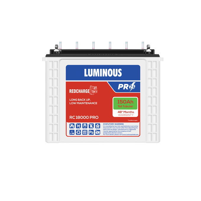 Luminous is a well-known brand in the energy storage industry, producing high-quality batteries for various applications. Their range includes inverter batteries, which are widely used in homes and businesses for power backup. Luminous batteries are known for their durability, advanced technology, and efficient power output, which makes them a popular choice for inverters and UPS systems. Luminous Inverter Dealers near me The brand offers several types of batteries, such as tubular and flat plate batteries. Tubular batteries are highly efficient and suitable for areas with frequent power cuts due to their long lifespan and ability to handle deep discharge cycles. Luminous also focuses on eco-friendly technology, ensuring minimal environmental impact. These batteries are designed to deliver consistent performance, even in challenging conditions, and come with warranties for customer assurance. Inverter Battery shop Near me Luminous has gained trust due to its customer-centric services, offering easy installation, maintenance support, and a wide network of service centers www.lnbatteries.com Highest selling LUMINOUS battery range in TALL tubular category ● HADI HPLC plates: Worry free superior performance with least battery maintenance ● Tower type TT container, ensuring more than 20% extra electrolyte, ensuring lesser topping up frequency & better thermal management ● Provided with 6 nos. free float indicators for ease of battery maintenance ● Thick tubular spines are of low antimony alloy and cast in HADI for superfine grain structure Capacity: 150 Ah Red charge TT range of batteries offers worry free electrical performance during most arduous power cut scenario, ensuring both HRD capability & SFC capability. Batteries made in tall tower type container ensures lowest maintenance during its service life.