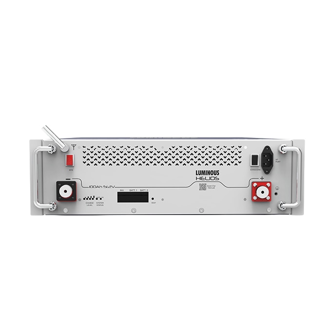 Luminous Lithium Battery IHelios 51.2V 100Ah The Luminous Helios 51.2V 100Ah is a high-capacity Lithium Iron Phosphate (LiFePO4) battery system designed for heavy-duty residential and commercial backup. It is widely used with 48V inverter systems and offers a massive jump in performance compared to traditional lead- Voltage & Capacity: 51.2V (nominal) and 100Ah, providing a total energy storage of 5.12 kWh. Cycle Life: Rated for 3,000 cycles at 25°C with 80% depth of discharge (DoD), translating to roughly 10–12 years of service life. * Efficiency: Delivers up to 50% more backup power than standard batteries of similar rating due to high discharge efficiency. * Charging: Supports 3x faster charging, typically reaching full capacity in 4–6 hours depending on the inverter. * Design: A sleek, wall-mountable or rack-mountable unit weighing approximately 52.5 kg. [2, 3, 5, 6, 7 Estimated Pricing & Warranty Price: It is currently listed at approximately ₹99,999 (inclusive of taxes) on the [official Luminous website Warranty: Comes with a standard 5-year warranty. [3, 8, 9, 10] Compatibility This battery is “universally compatible,” meaning it works with most high-frequency (HF) and low-frequency (LF) inverters. However, it is ideally paired with Luminous's own high-capacity 48V models Luminous Optimus 4500 (4kVA/48V) * Luminous EVO.Li series [3, 10, 12] Pro Tip: Since this is a 51.2V system, it is only suitable for 48V inverters (which usually take 4 lead-acid batteries in a series). It cannot be used with standard 12V or 24V home inverters. [2] Do you already have a 48V inverter ready, or are you looking for a compatible inverter model to go with this battery